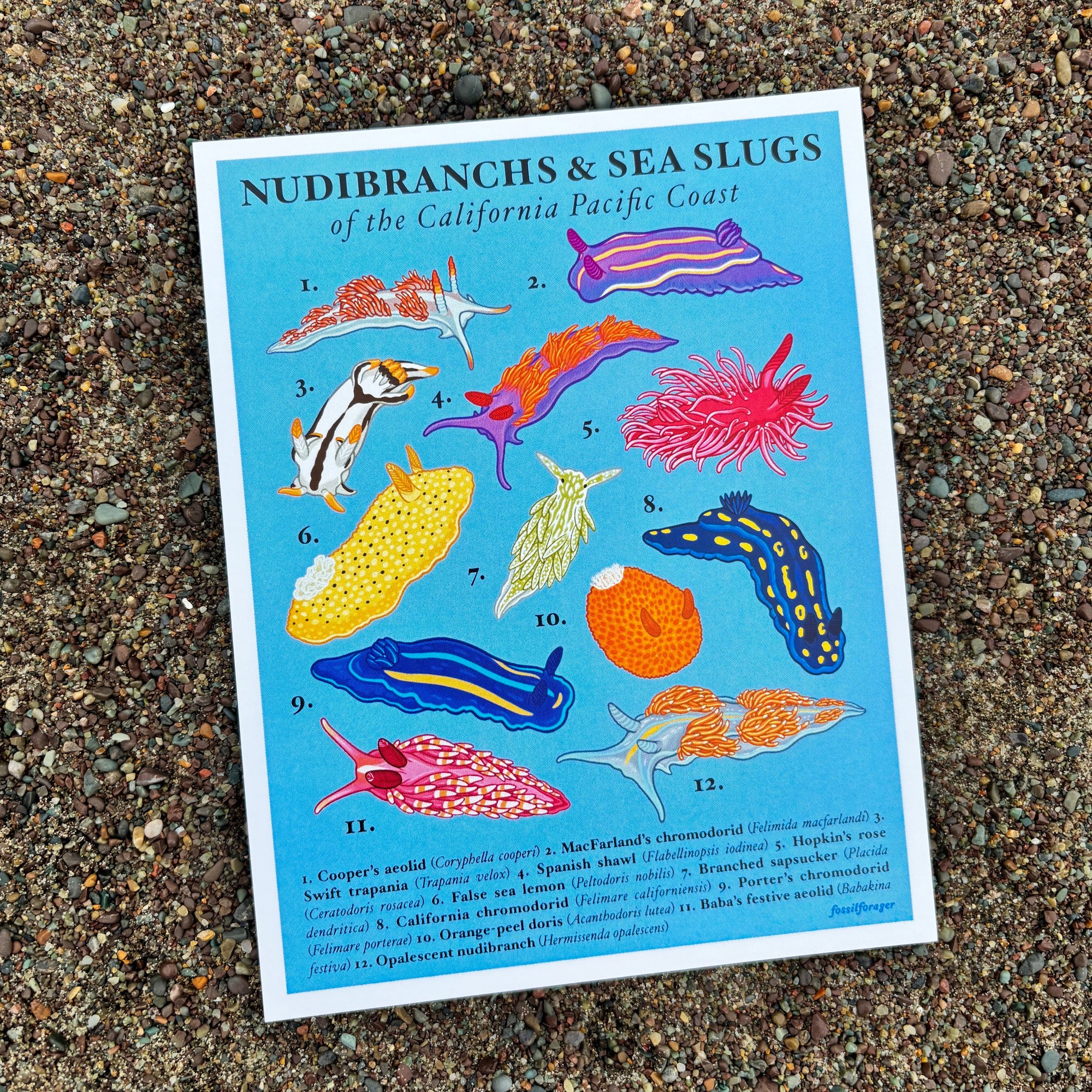 This print features various species of nudibranchs found along the Pacific coast of California! š£ Available in three sizes: 4.25 x 5.5 inch postcard, 8x10 inch print, 11x14 inch print š£ Printed on satin heavy cardstock